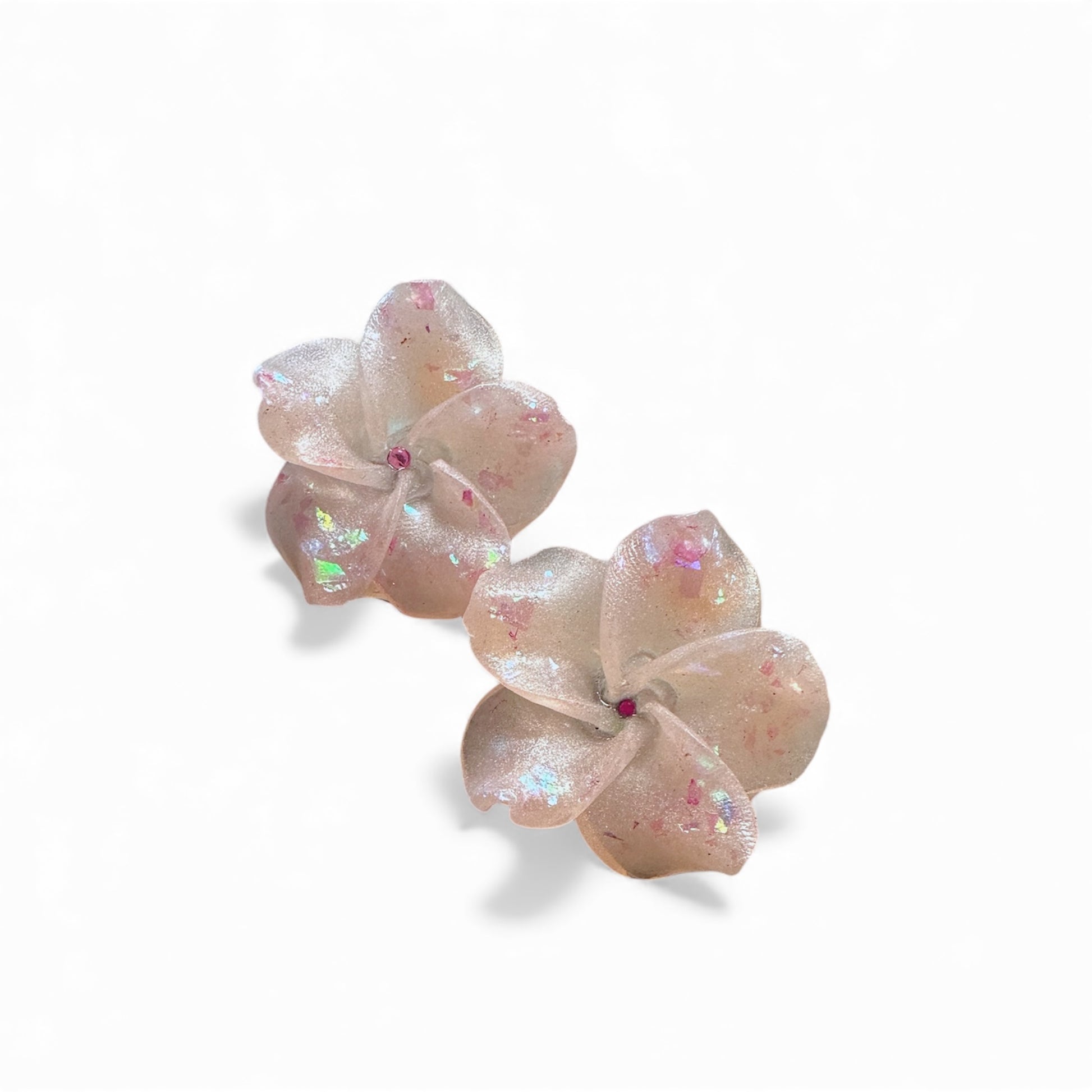 Symbol of love and fleeting beauty, this Hibiscus-shaped earring gives elegance and lightness on summer days. Created with resin and mica powder colors. The pin used for the earring can be gold or silver in colour, and made of steel for durability over time.