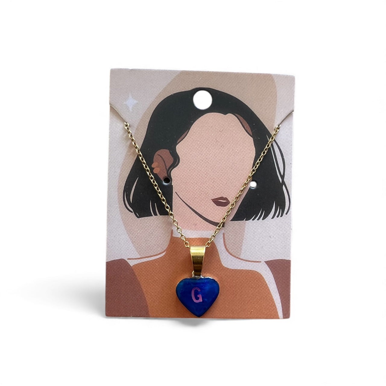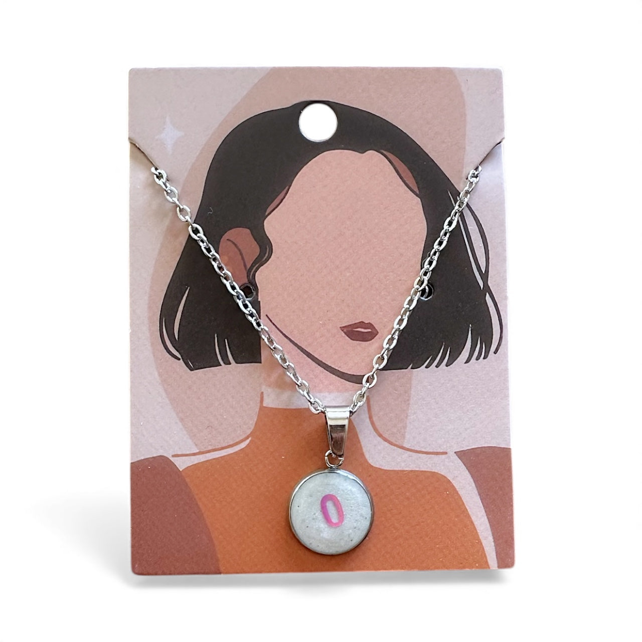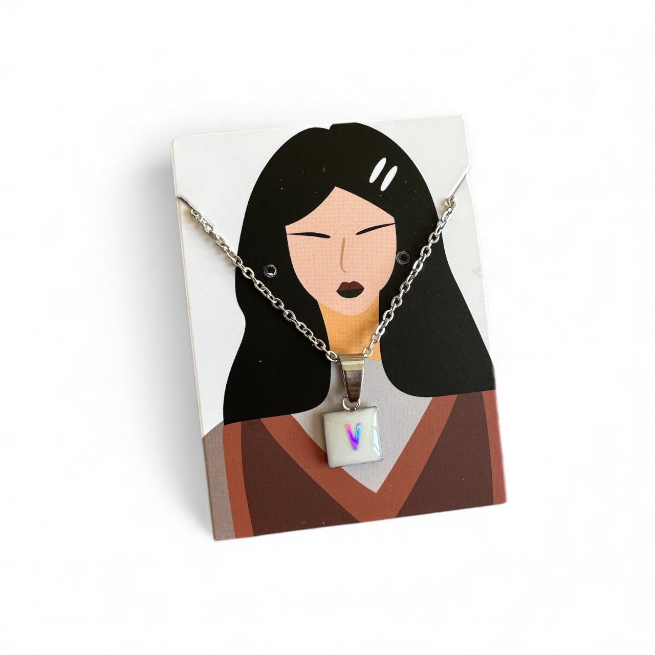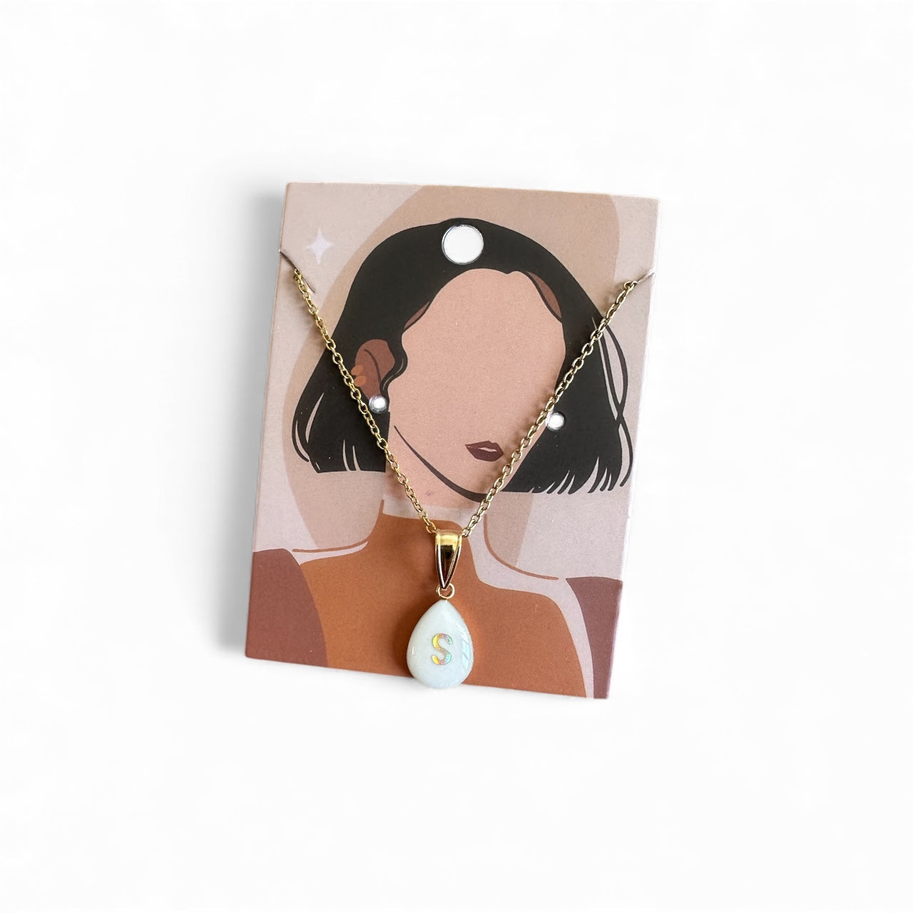 Ciondoli e collane in acciaio inossidabile con resina colorata e piccoli iniziali.