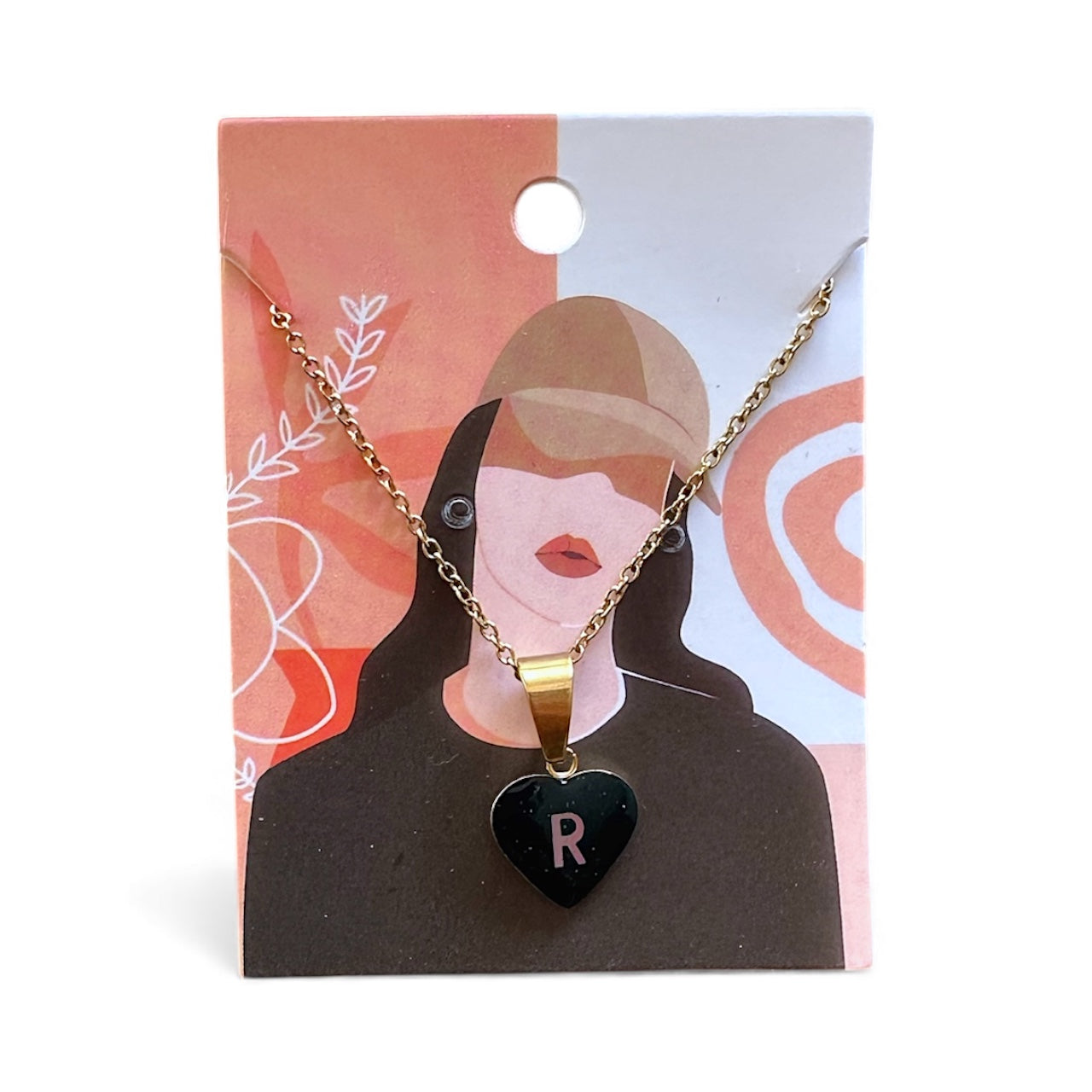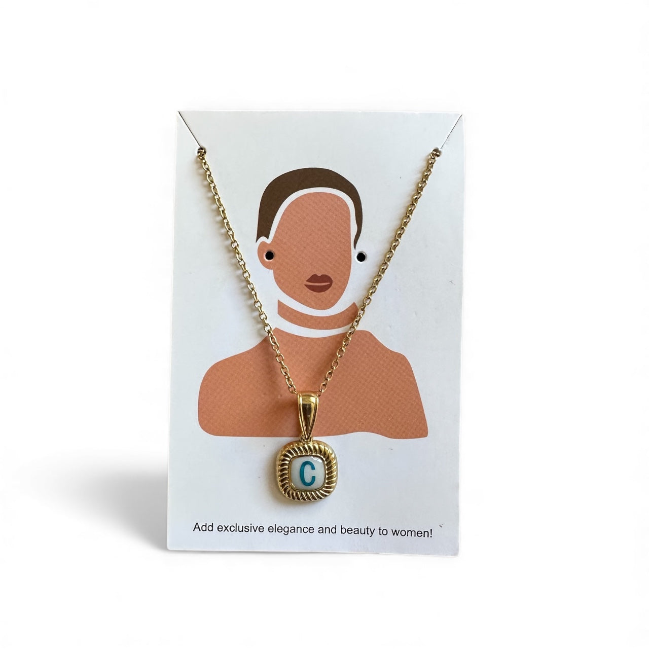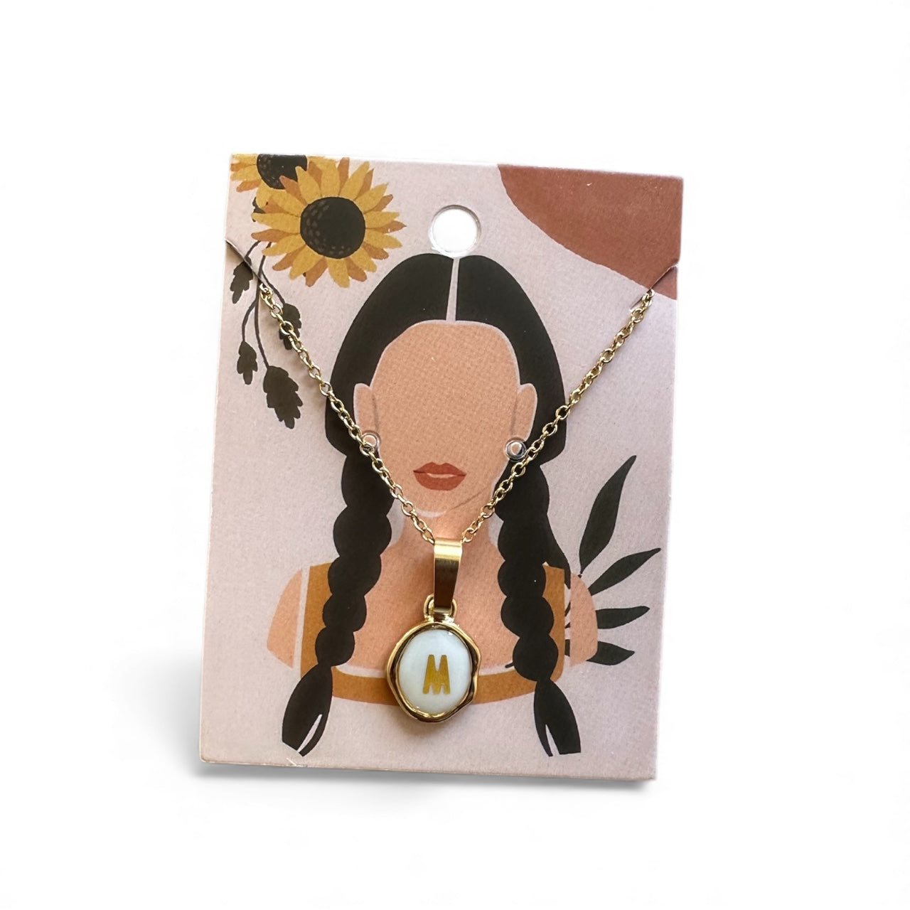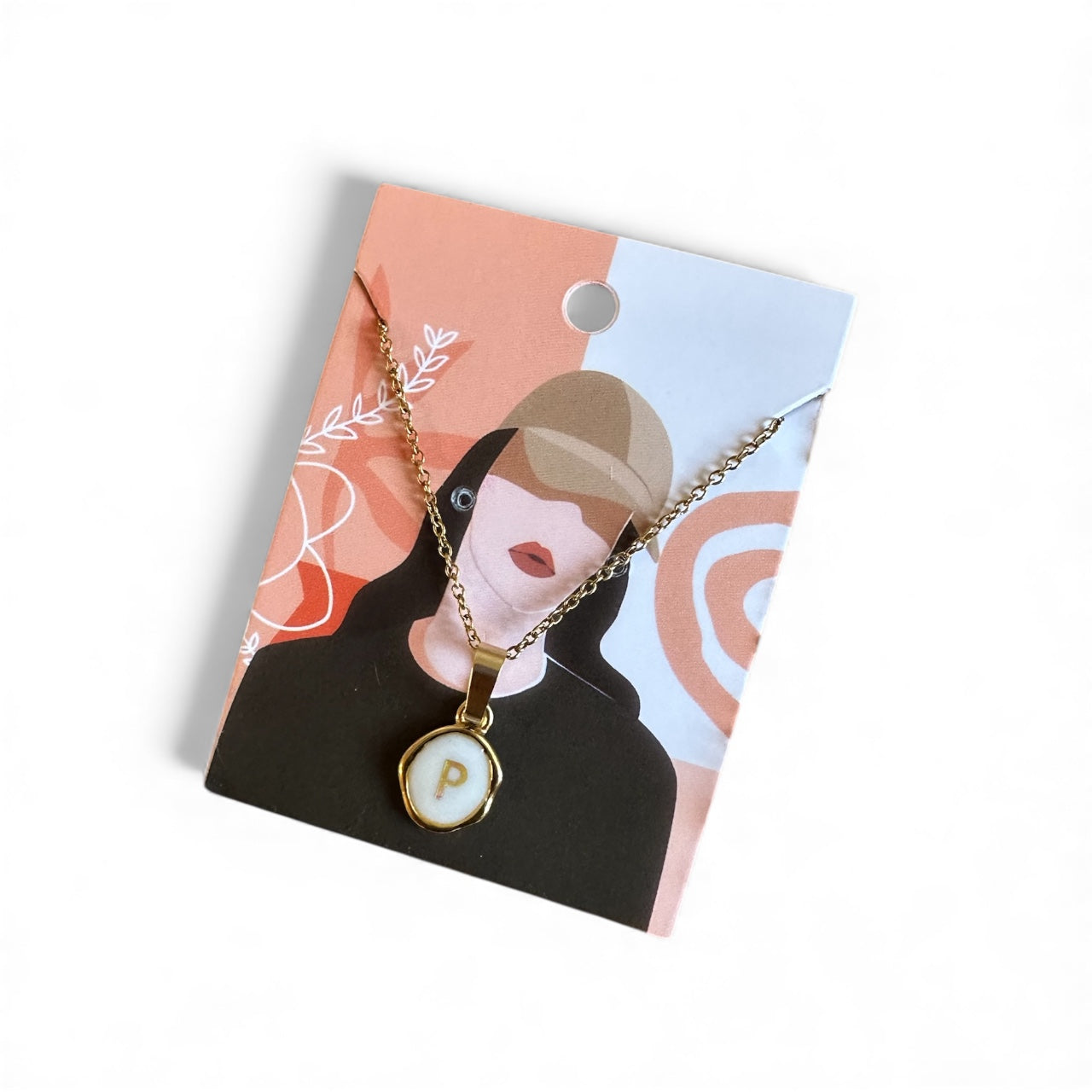 Ciondoli e collane in acciaio inossidabile con resina colorata e piccoli iniziali.