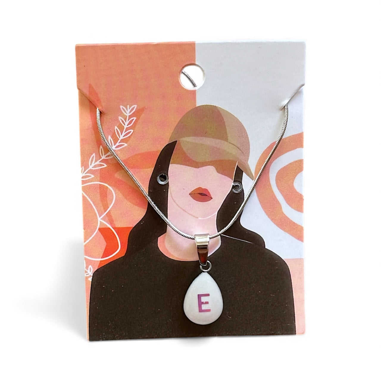 lettera E ciondolo ovale - bianco/argentoVariante esaurita o non disponibile