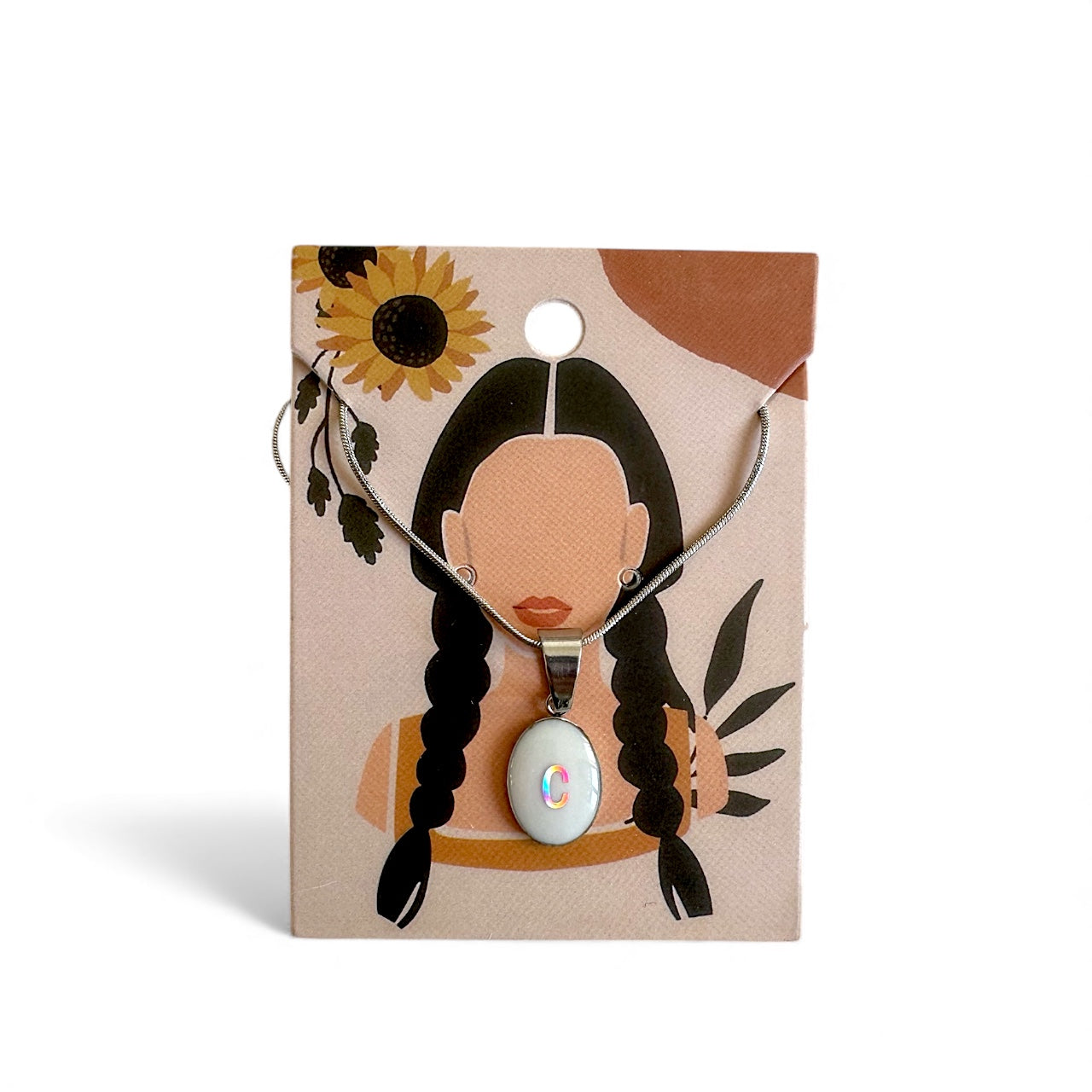 lettera C ciondolo ovale - bianco/argentoVariante esaurita o non disponibile