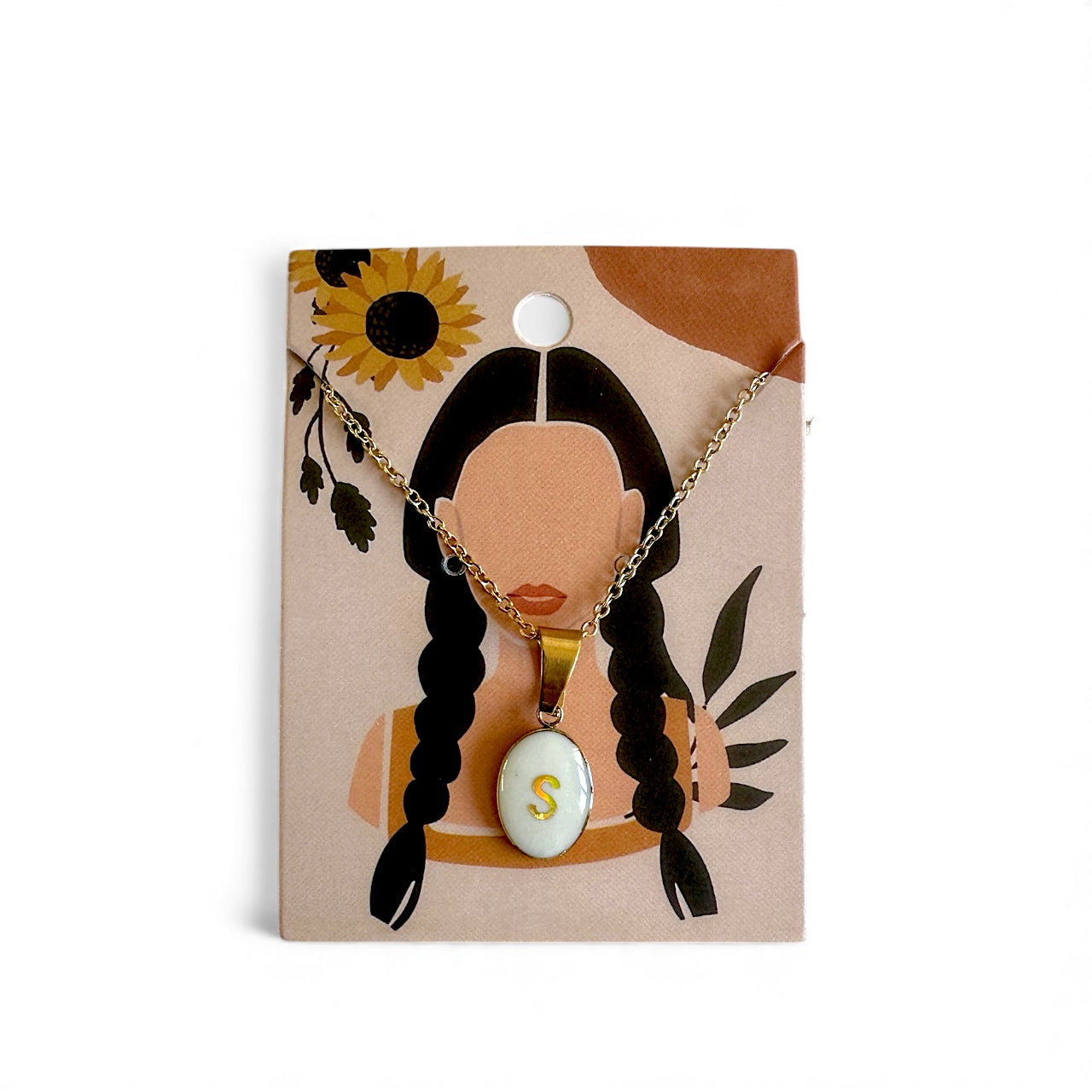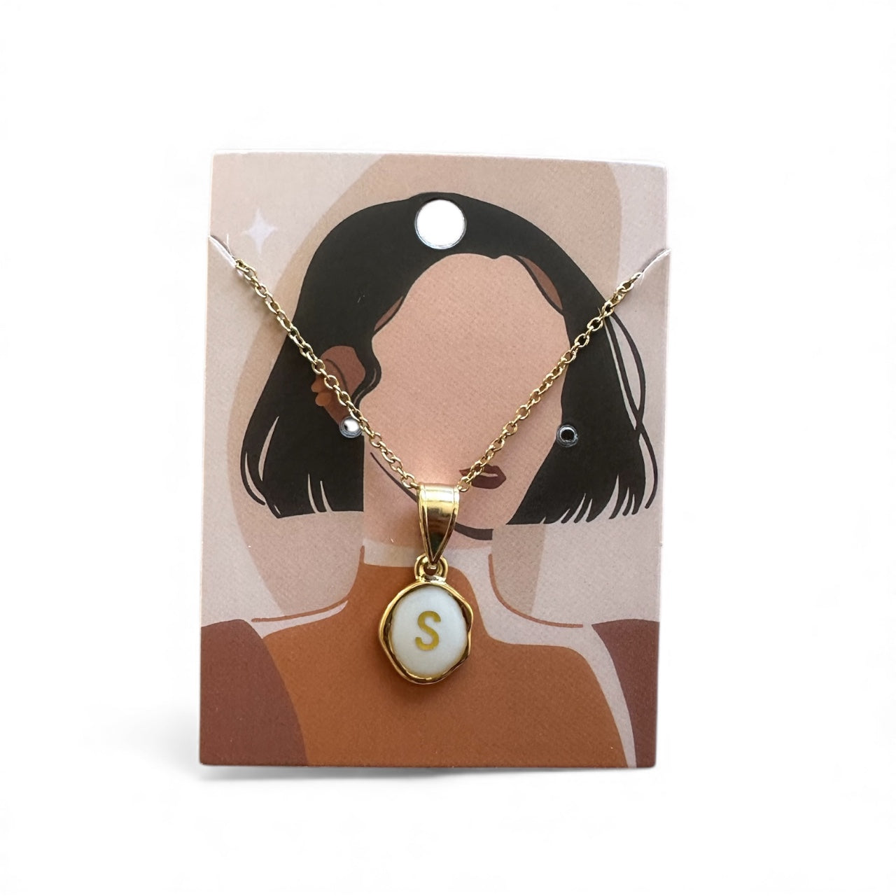 lettera S ciondolo ovale - bianco/oroVariante esaurita o non disponibile