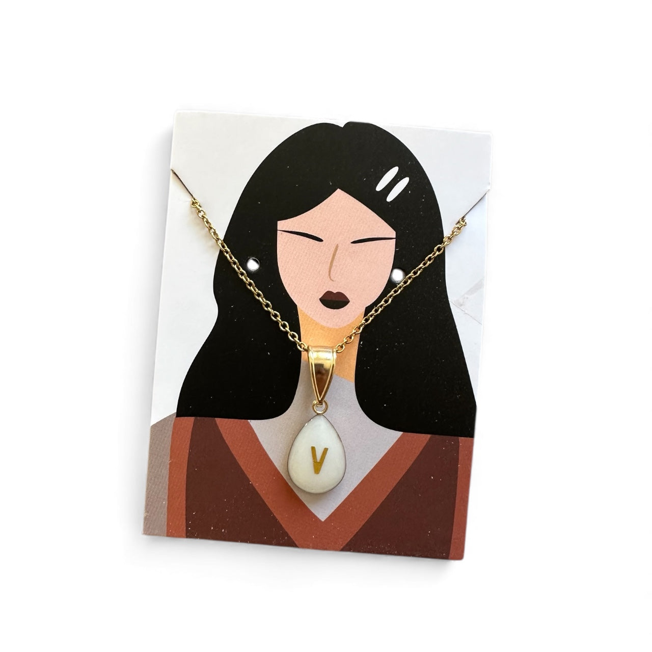 lettera V goccia - bianco/oroVariante esaurita o non disponibile