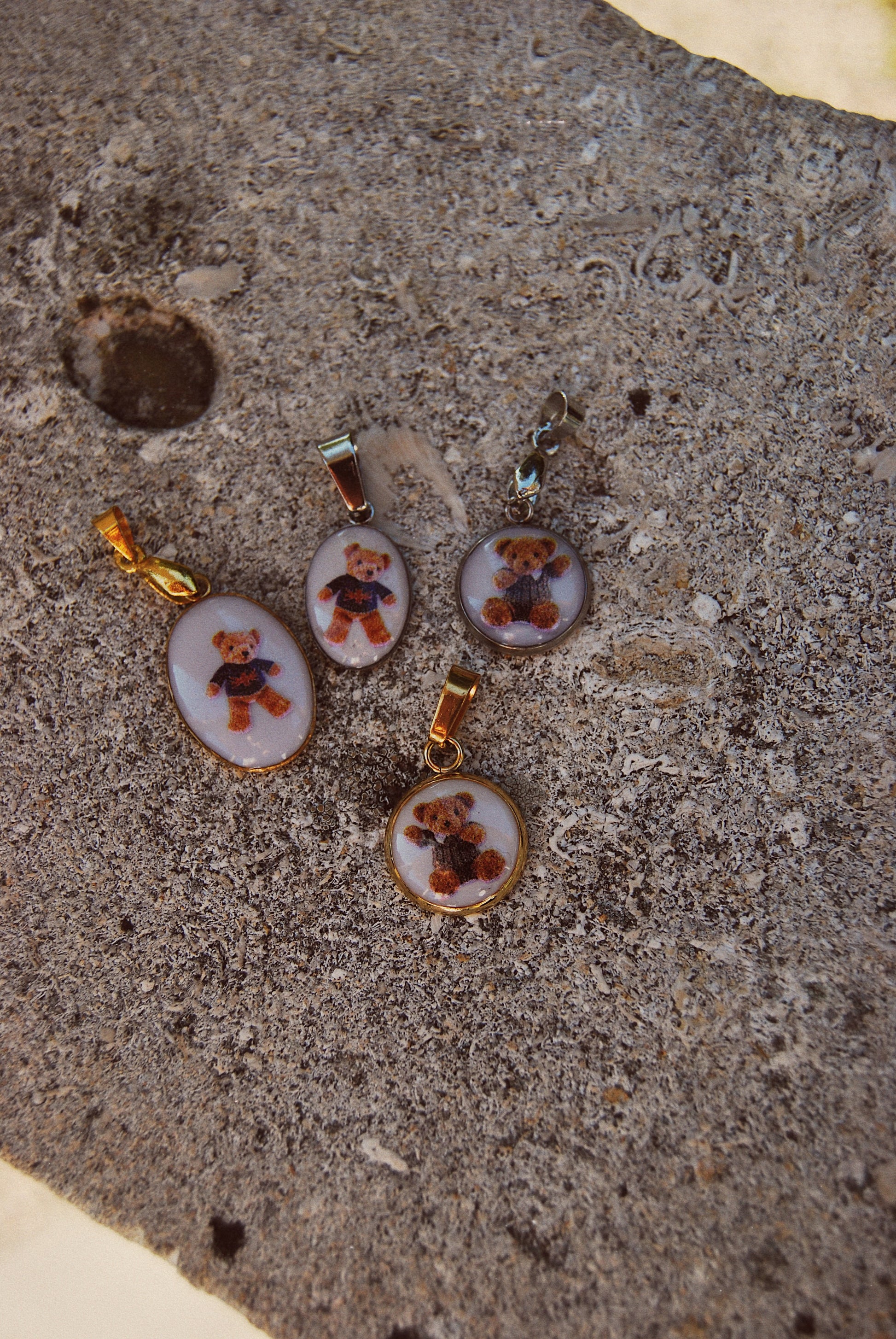 Ciondoli TEDDY FEVER con base bianca o blu.